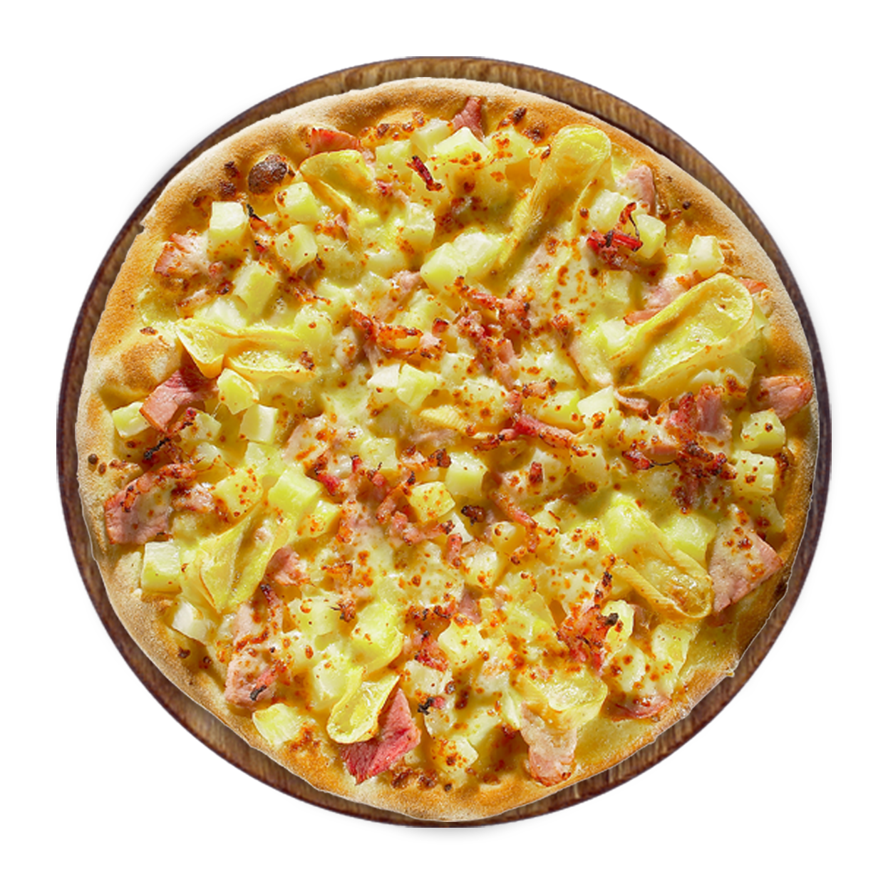 Crème fraîche, mozzarella, lardons, pommes de terre, reblochon.
