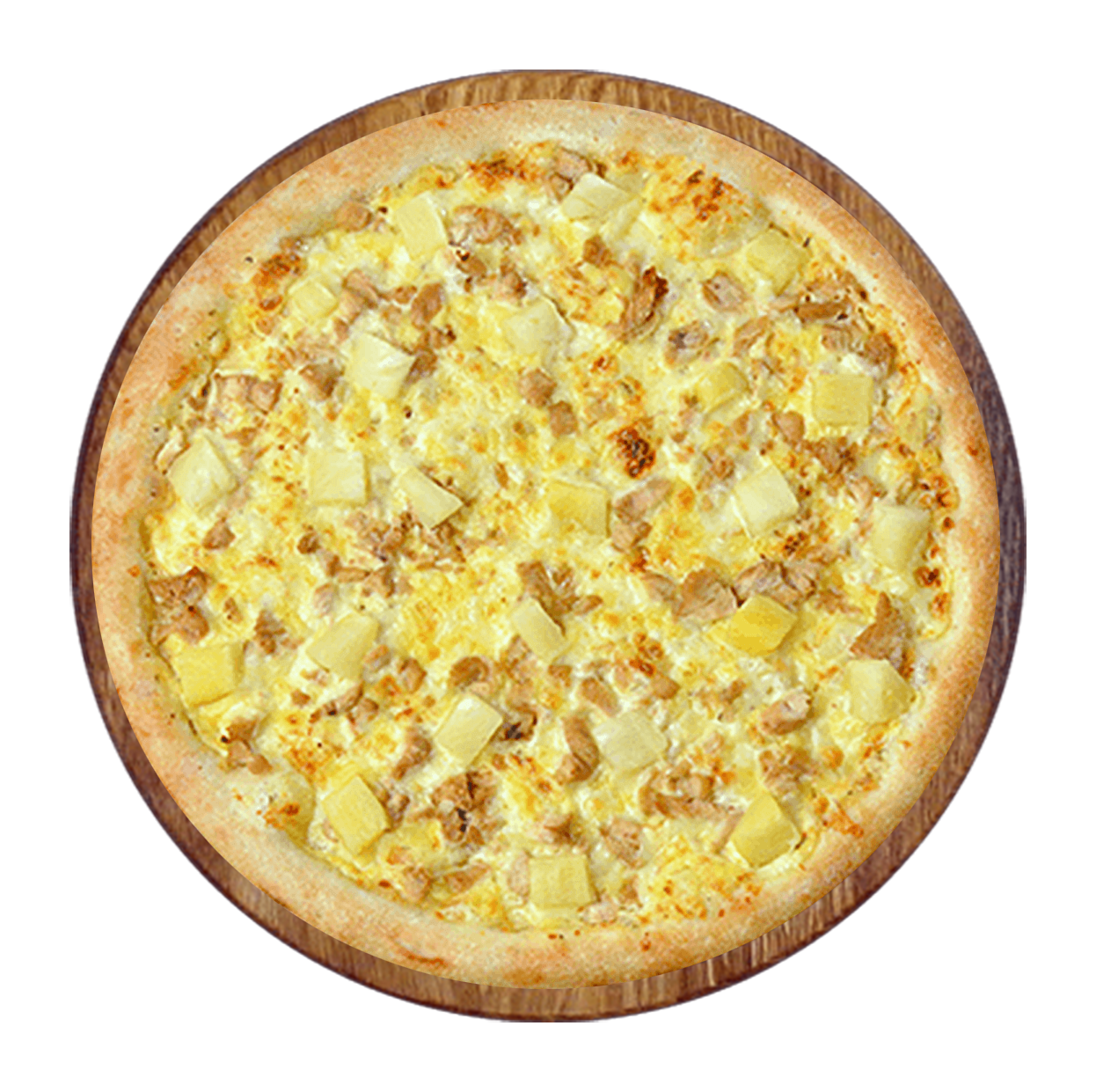 Crème fraîche, mozzarella, champignons, poulet, oignons.
