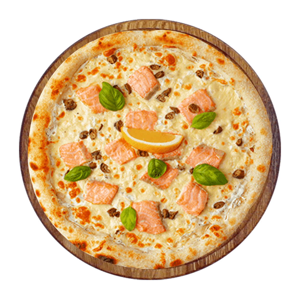 Sauce tomate, mozzarella, saumon fumé, oeuf de lumps, citron.