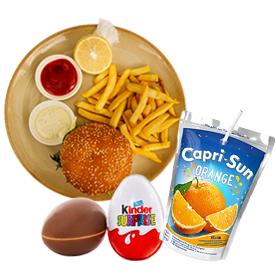 1 Cheese burger + Kinder + Frites + Capri-Sun.