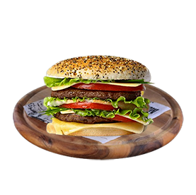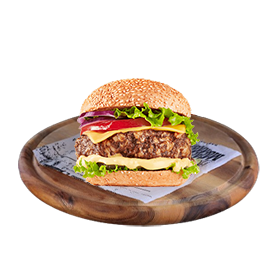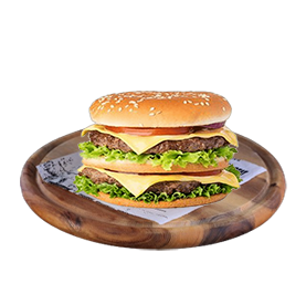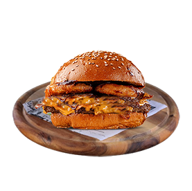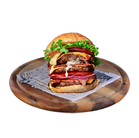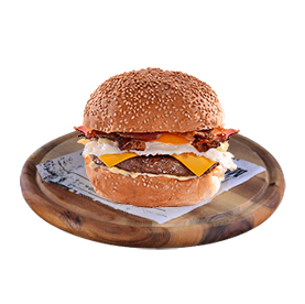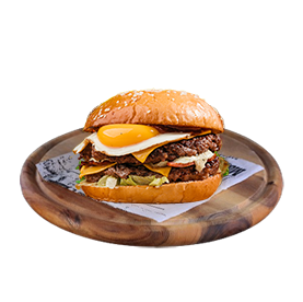 2 Steaks de boeuf 180gr, 4 cheddar, bacon, oeuf.
