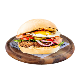3 Steaks de boeuf 180gr, 6 cheddar, bacon, oeuf.